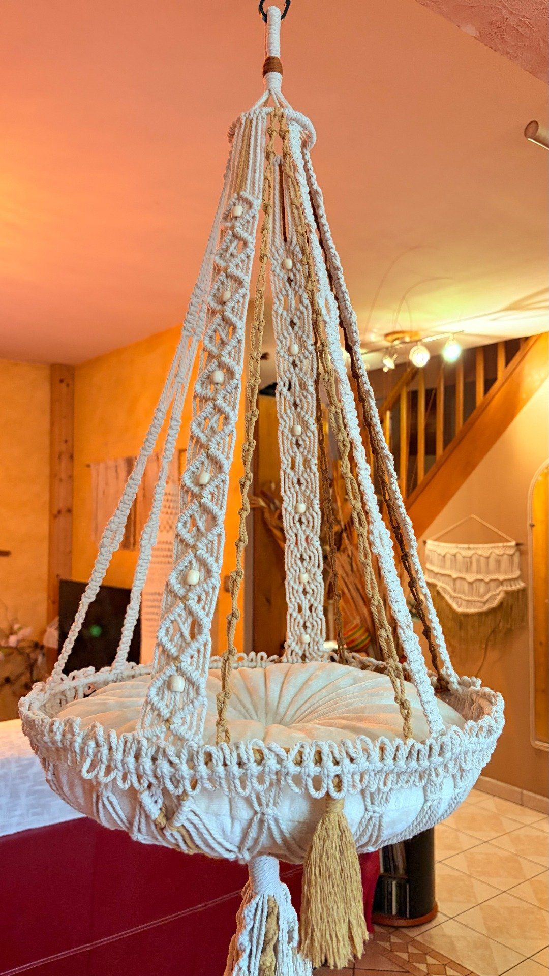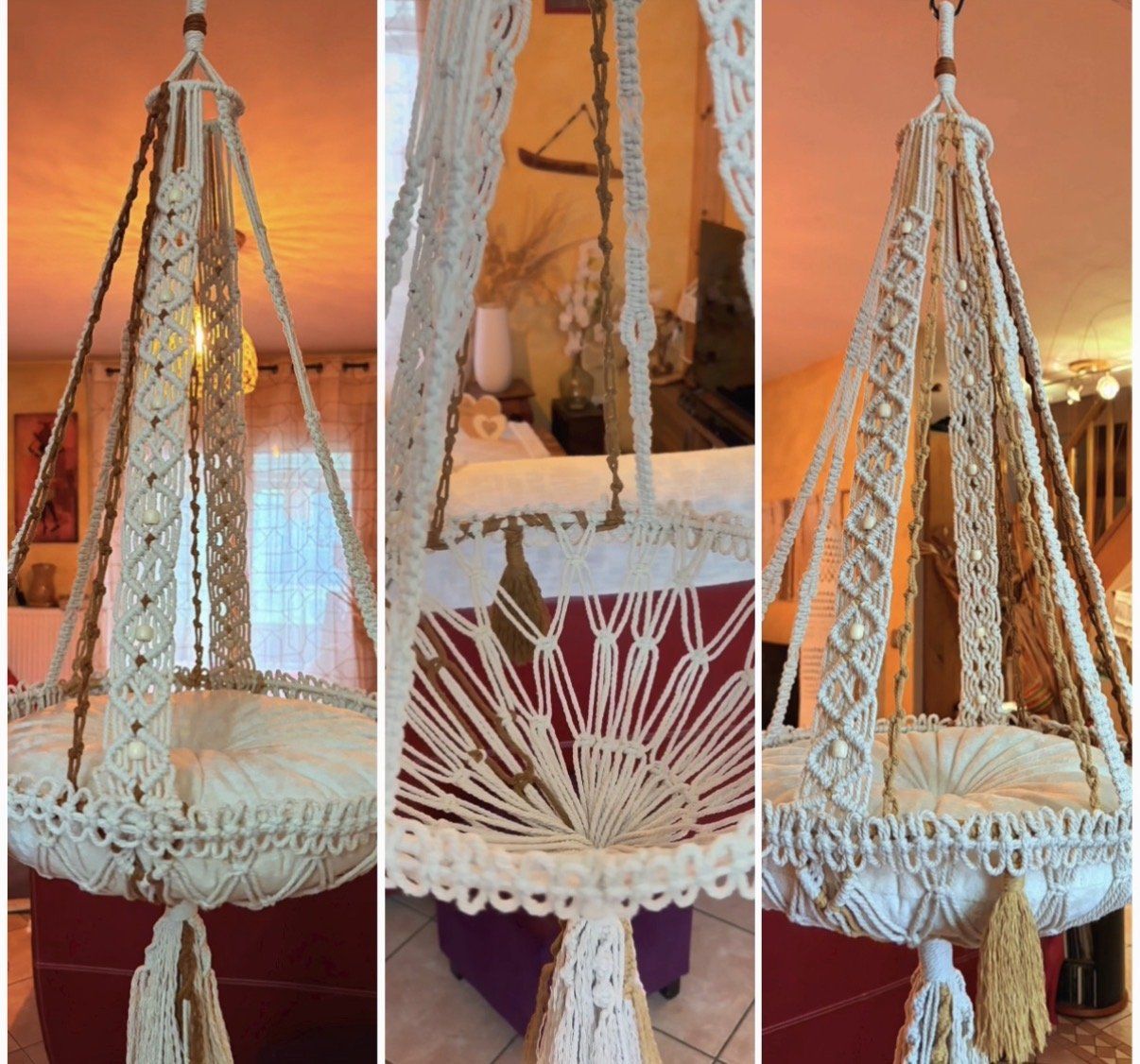 Offrez à votre chat un véritable cocon de douceur avec cette berceuse suspendue réalisée à la main en macramé.