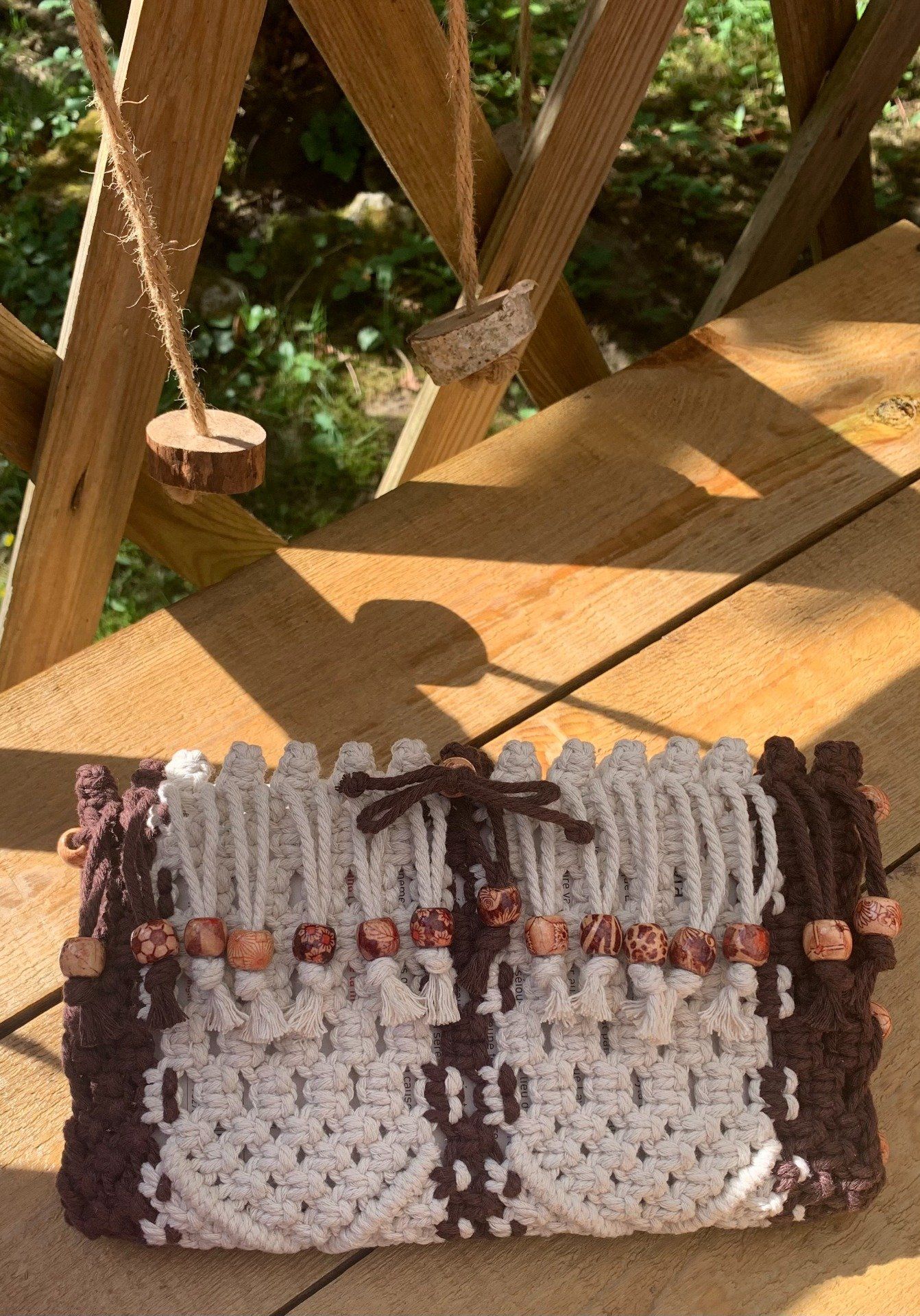 Cette pochette en macramé, faite main est idéale pour protéger et transporter un livre de poche.