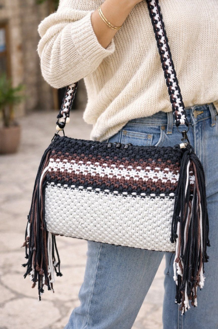 Ses franges généreuses lui donnent du mouvement et du caractère, tandis que sa bandoulière tressée assure un porté confortable.