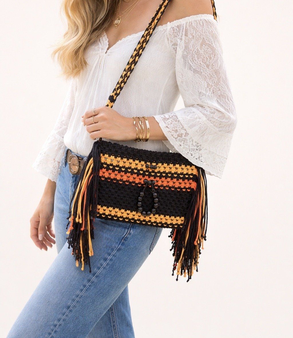 Les franges et la anse tressée lui donnent un style bohème affirmé, parfait pour une tenue casual ou estivale.