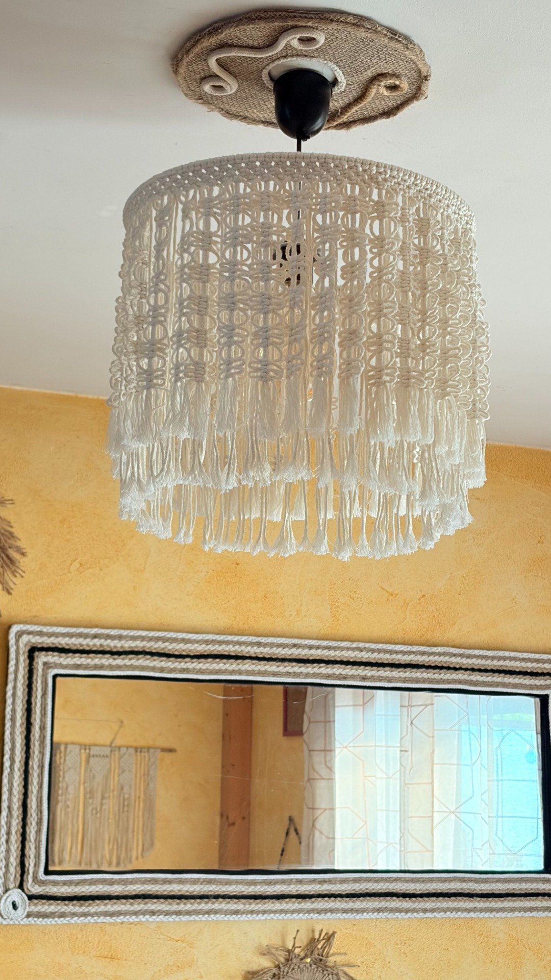 Laissez entrer la douceur dans votre intérieur avec cette suspension luminaire en macramé entièrement faite main.