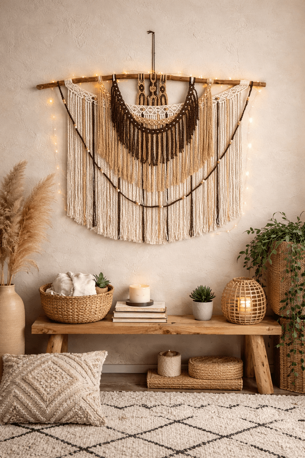 L’alliance du coton et du bois, pour une décoration artisanale pleine d’élégance..