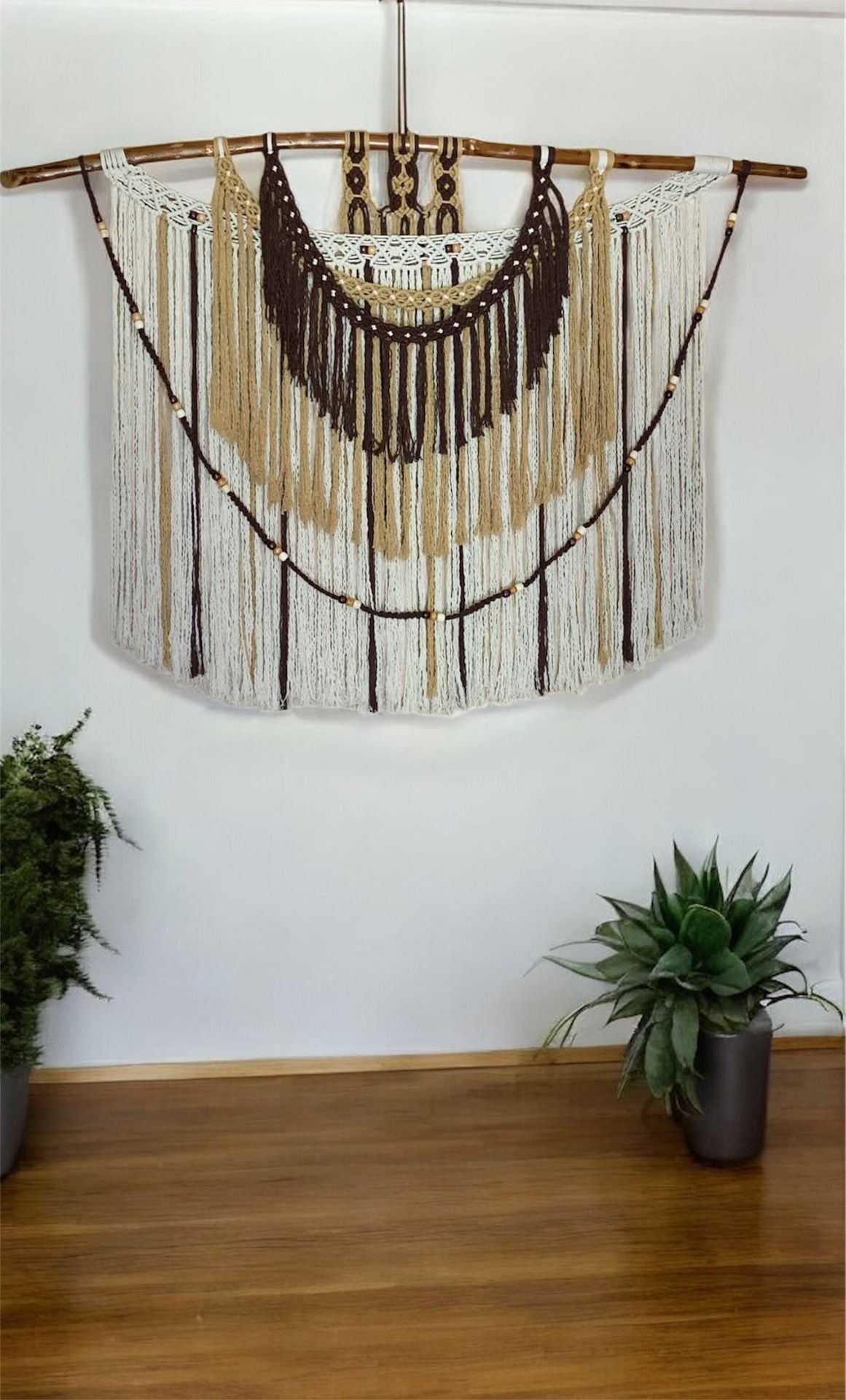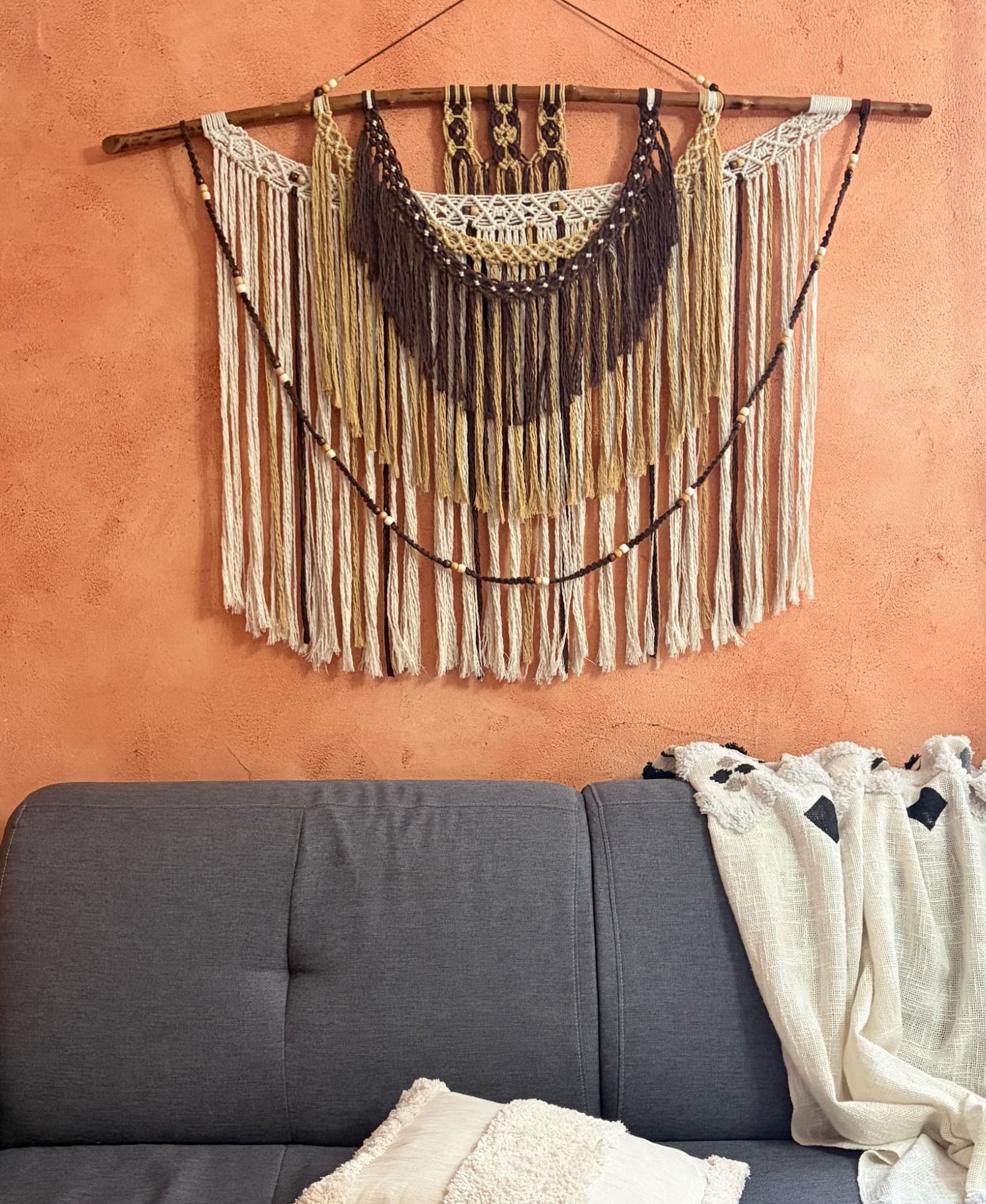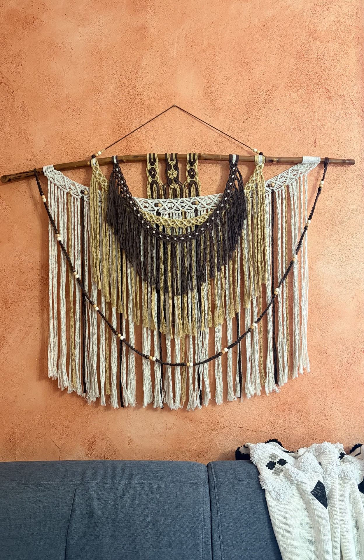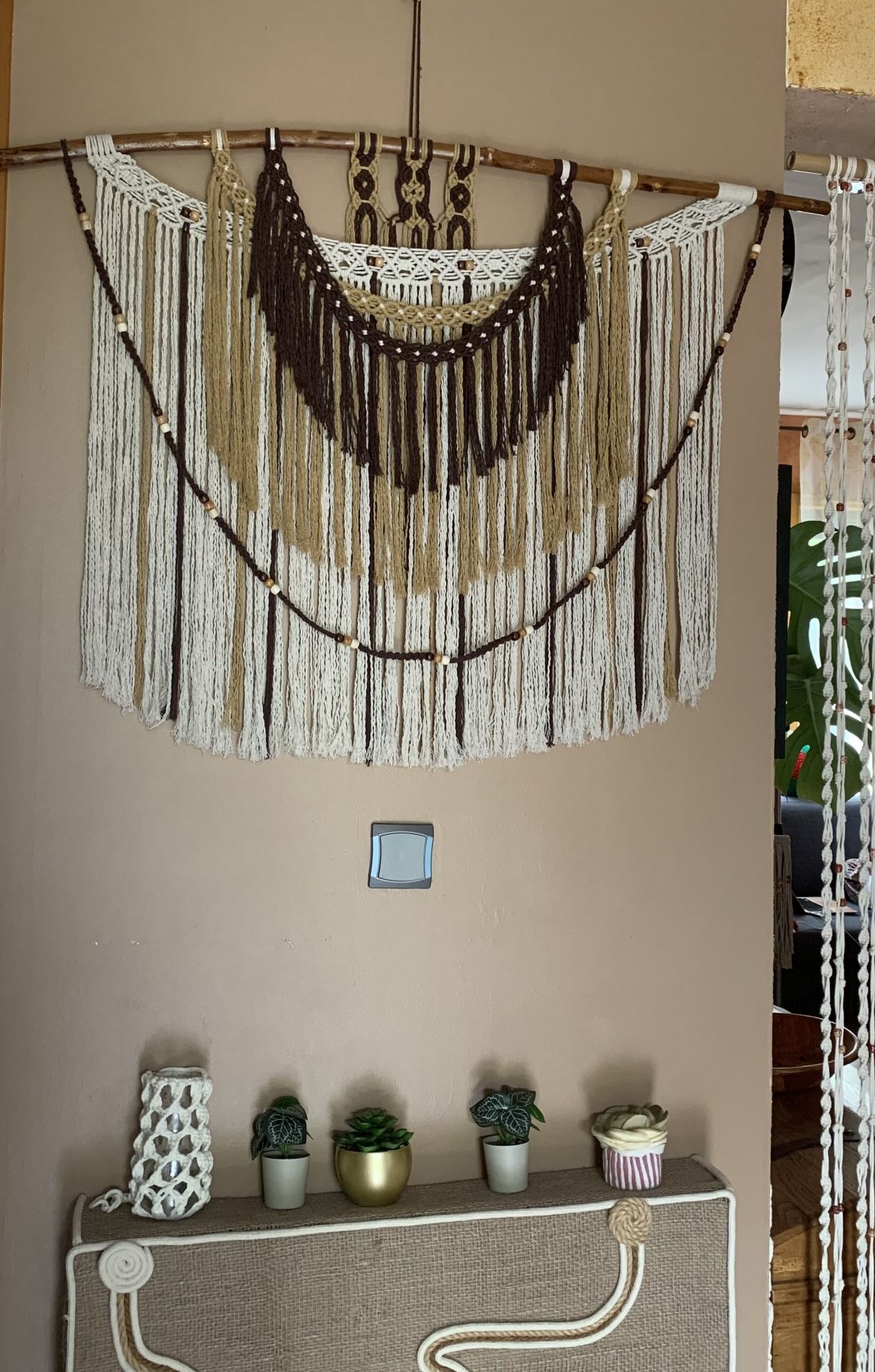 Tenture murale en Macramé L112, H80 cm, hors corde de suspension.