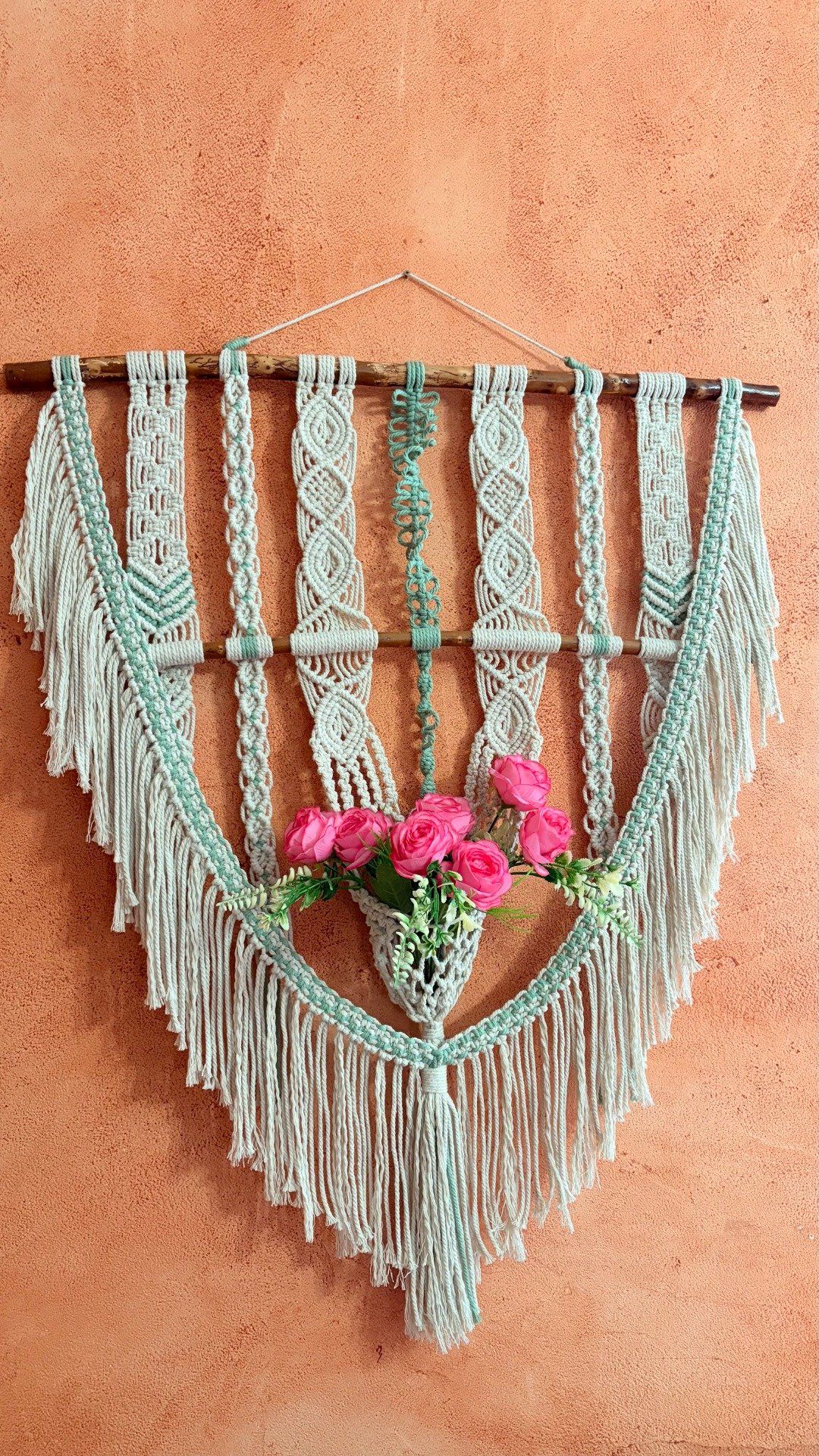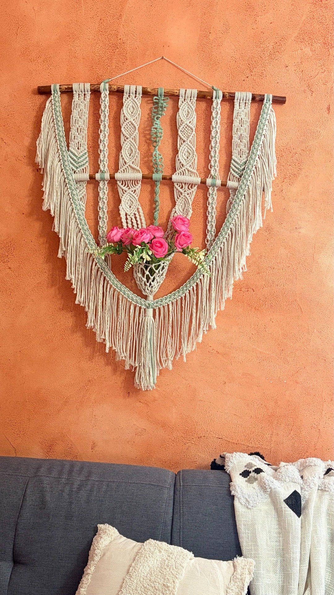 Laissez entrer la nature dans votre intérieur avec cette tenture murale en macramé, entièrement réalisé à la main.